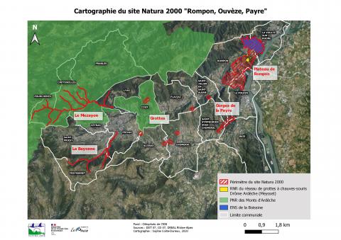 Le site de Rompon, Ouvèze, Payre fait partie du réseau Natura 2000 depuis 2006 en tant que Zone Spéciale de Conservation (ZSC). Il inclut 18 communes ardéchoises sur 1 054 hectares.
