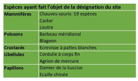 Il est également essentiel d'assurer la qualité des milieux aquatiques pour le Barbeau méridional et l'Ecrevisse à pattes blanches, deux espèces à fort enjeu du site. On note aussi la présence de la loutre.